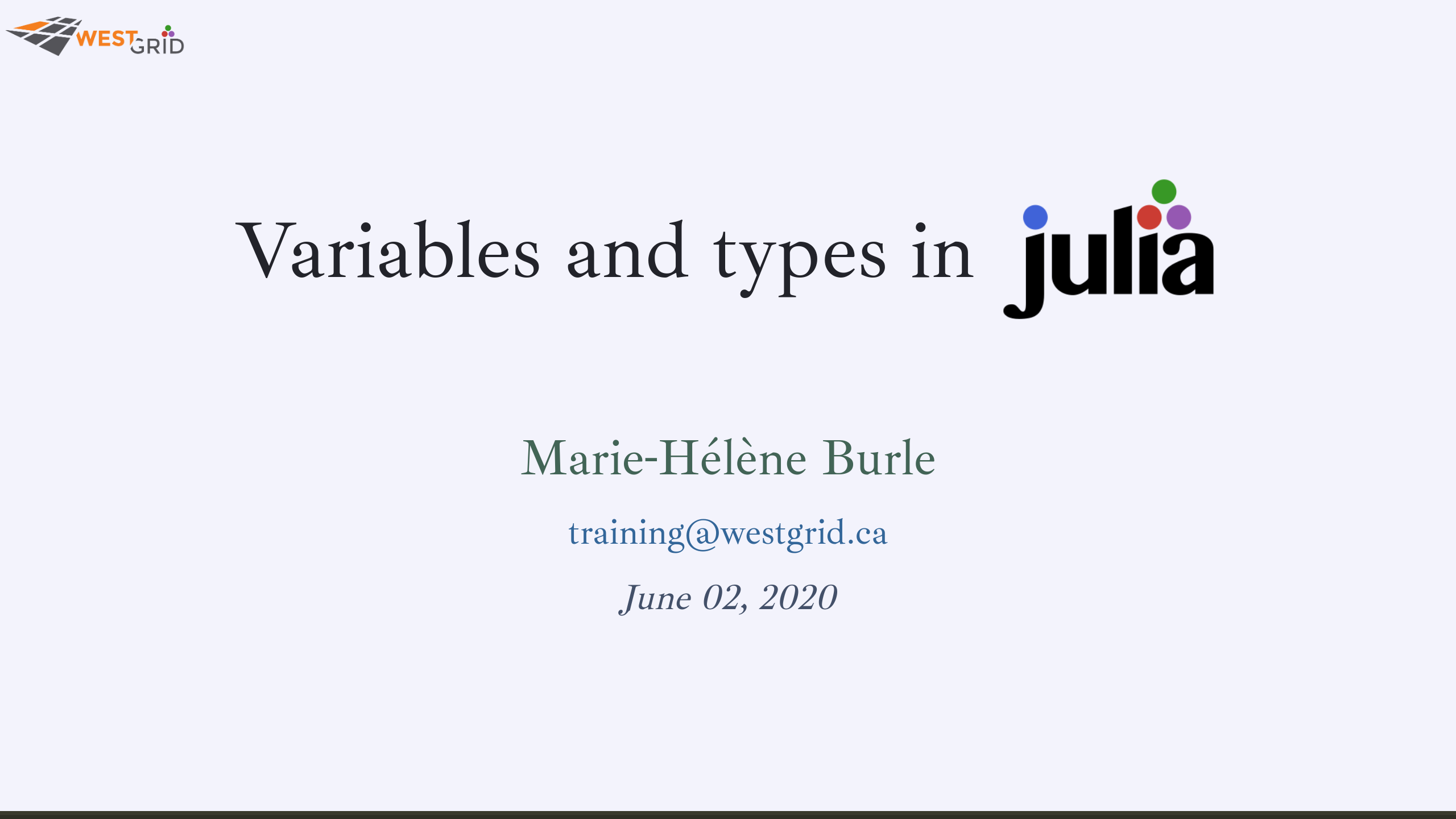 In this session, we will start playing in Julia and learn about variables and types.